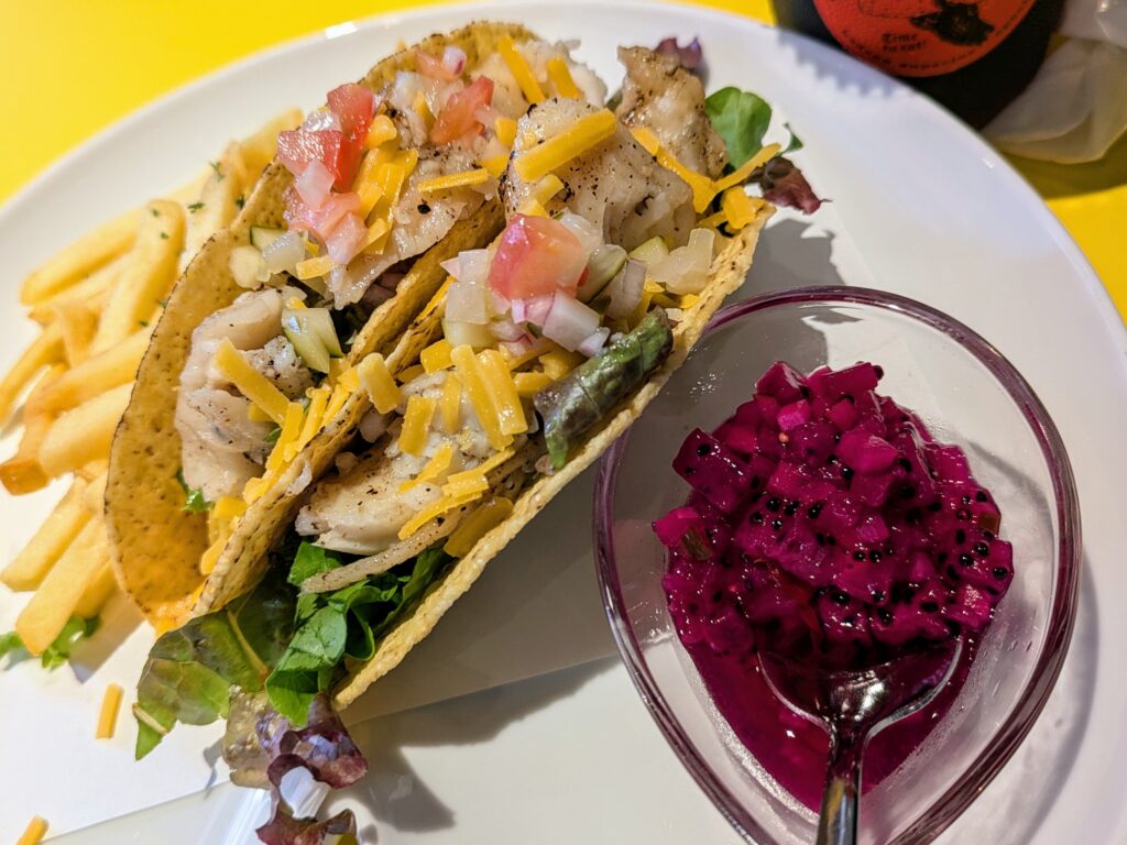 この日はドラゴンフルーツとパイナップルのサルサソースが選べるスタイルになっていた。