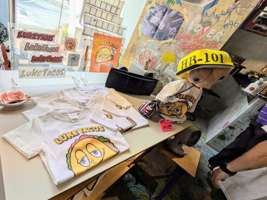 なにか企んでいるようにも見えて、眠そうにもにも見えるロゴのタコスの表情も「少年ルークっぽいでしょ」とイタズラに笑う。