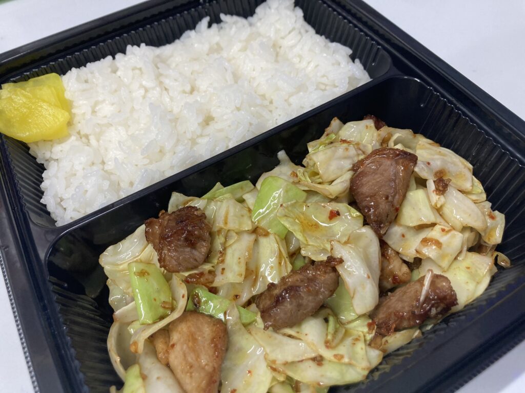 ガーリックオイルで炒めた沖縄産豚肉とキャベツに辛味噌。福岡のソウルフード「鉄板焼肉」をテイクアウト用にアレンジしている。